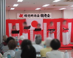 敬老会は午前11時に開会。町内会長のあいさつやご来賓の祝辞に続き、様々な演目が披露されました。